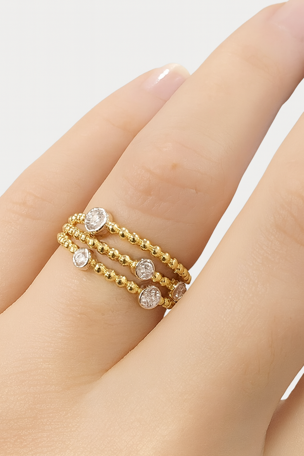 14k Gold Diamond Ball Bezel Bead Band Ring, 3 Row Diamond Ring, Gold Stacking Ring, Bezel Diamond Ring, Infinity Ring, Diamond Wedding Band, Christmas Gift, Gift For Her